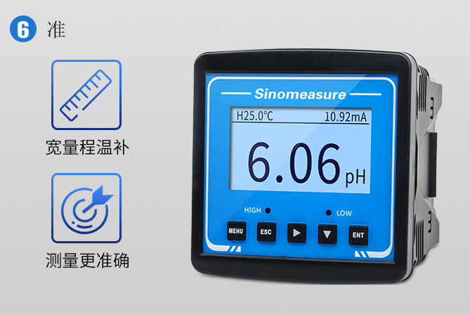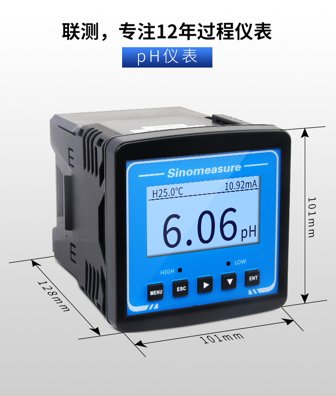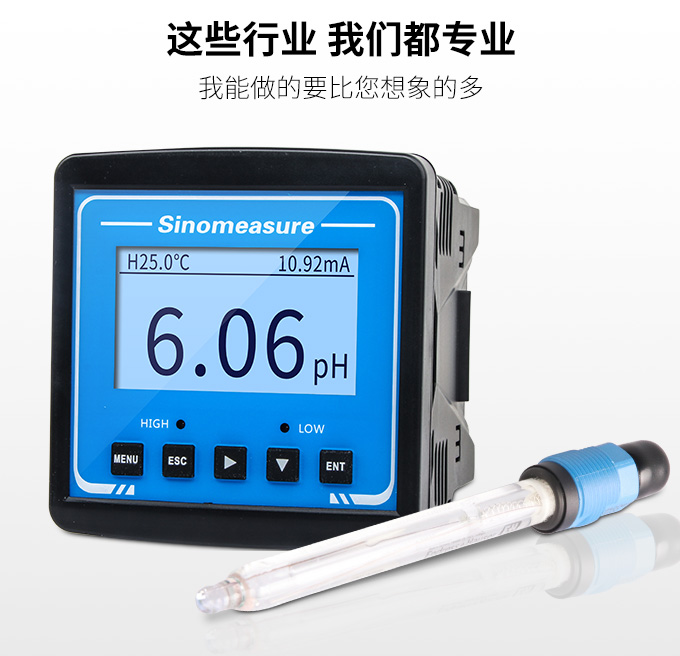 SIN-pH3.0型工業pH計,是工業酸度計的智能化升級產品??蓪ξ鬯畃H值進行連續測量或根據現場工況進行定量控制,來選擇相應的pH電極以有效提高產品的測量精度和延長產品的壽命。